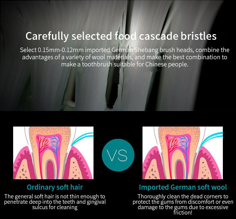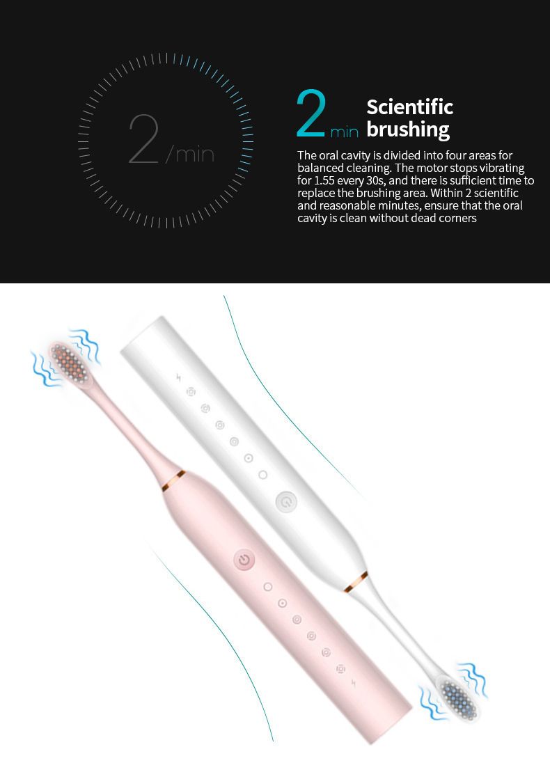 1.This rechargeable electric toothbrush is universal for adults and children, equipped with soft bristles, gentle and skin-friendly to protect gums.